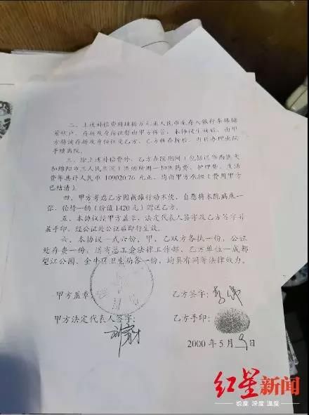 据了解,当年在去到各医院治疗都未果后,成都骨伤医院又把她安排住院。住了近一年,一直到2000年5月9日,李伟在《一次性终结补偿协议》上签了字,她才出院回家。