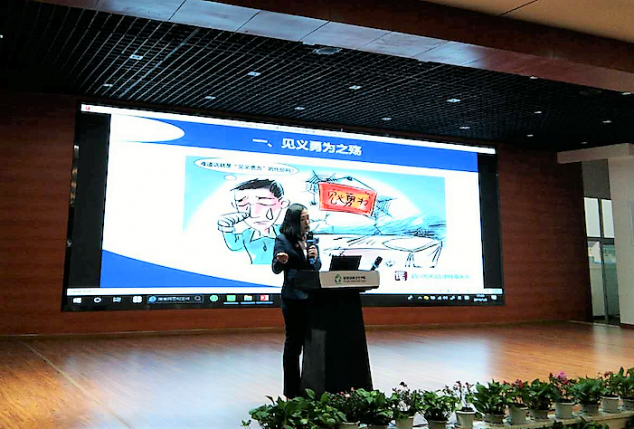 张媛媛律师结合案例分别从“见义勇为之殇”“见义勇为没那么简单”“见义勇为背后的法律问题”“我们见义勇为应注意的三点”四个方面,针对当前社会中对见义勇为的质疑和见义勇为的方式方法提出了自己的见解和剖析。现场学生积极参与、气氛活跃。