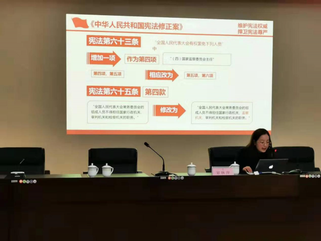 在宪法宣讲环节,宋秋萍律师从宪法的概述、新中国宪法的沿革及发展、2018年宪法修正案的主要内容等方面进行了分享。