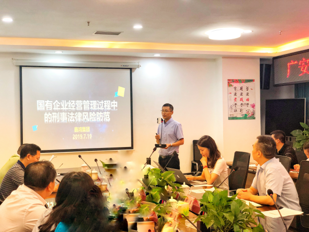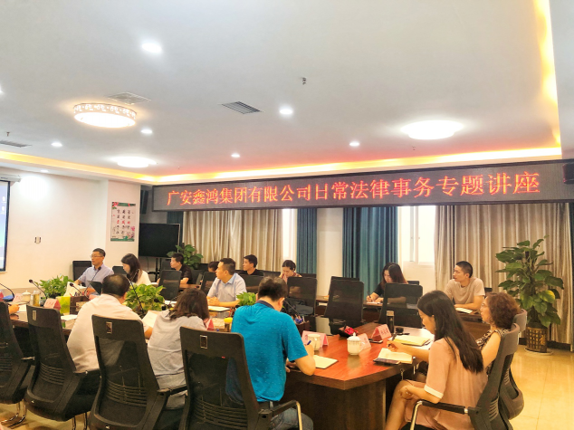 2019年7月19日,我所监事会主席何勇律师、田银行律师、梅怡悦律师受邀为广安鑫鸿集团及其6家子公司提供法律专题培训,本次培训由广安鑫鸿集团党委书记、董事长、总经理张福林主持,广安鑫鸿集团及其子公司各董事长、综合部责任人员等40余名员工参与了本次培训。