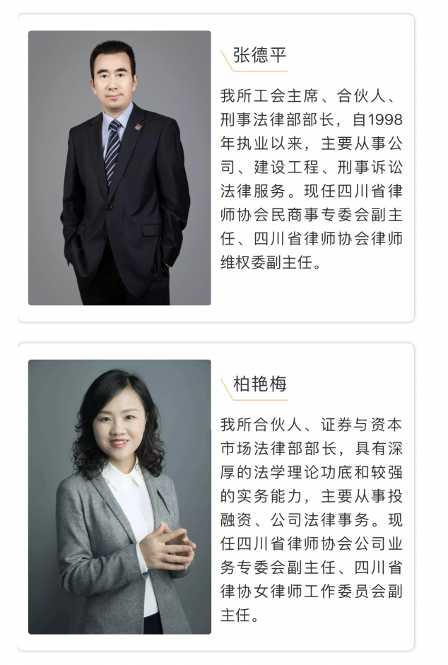 2019年5月28日下午,四川省商会人民调解委员会成立大会暨全省工商联法律服务工作会在成都召开,我所合伙人张德平、柏艳梅受聘担任本届调解委员会调解员。