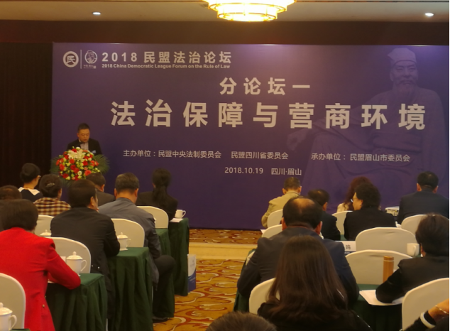 10月19日,由民盟中央法制委员会、民盟四川省委共同主办,民盟眉山市委承办,四川恒和信律师事务所、成都民盟企业家联谊会协办的2018民盟法治论坛在四川眉山召开。