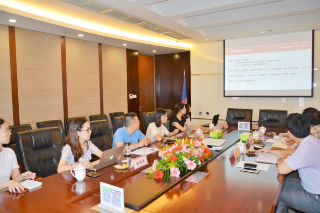 何妍雨律师围绕我所基本情况、专业领域、荣誉资质、青年律师培养、信息化建设、党建情况等方面进行了介绍。李大福副主任首先对濮鹤周主任一行的来访表示热烈欢迎,然后就我所政府与国有企业法律服务、矿产法律服务、金融法律服务等业务领域的情况进行了介绍,并发表了自己对于该些领域业务办理的意见和看法,最后希望双方加强联系,促进交流。