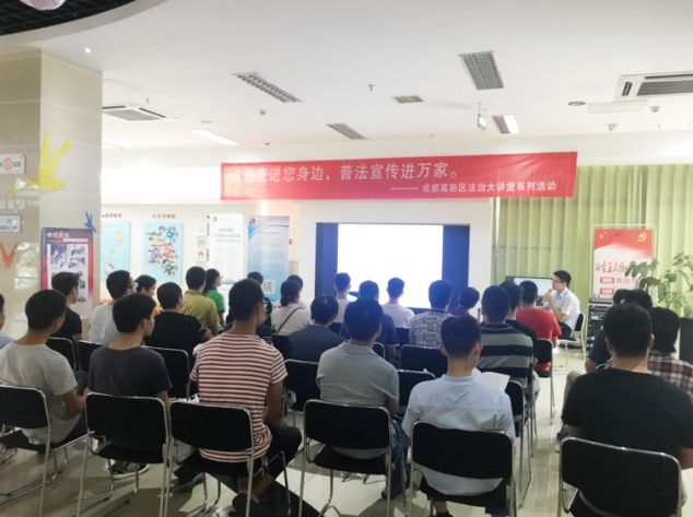 2018年7月14日,在中共成都高新区工委政法委员会、成都高新区依法治区领导小组学法用法工作的组织下,四川恒和信律师事务所法治宣讲团队走进高新西区西园街道,为当地居民开展2018年法治大讲堂第七场活动,就商品房买卖其他生活中常见法律问题进行交流。