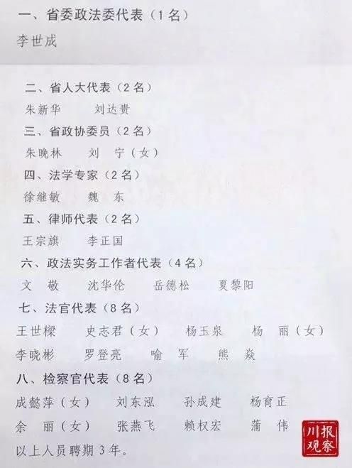 第一届四川省法官检察官惩戒委员会委员名单: