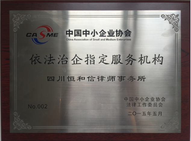 在本次会议上,中国中小企业协会与四川恒和信律师事务所签署《中国中小企业依法治企合作律所协议书》,四川恒和信律师事务所成为中国中小企业协会依法治企指定服务机构。