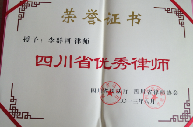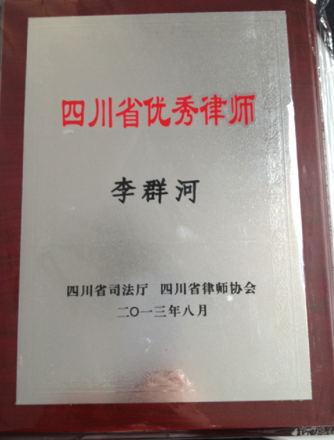 2013年8月,我所高级合伙人兼执行主任李群河律师被四川省律师协会评为“四川省优秀律师”的荣誉称号。