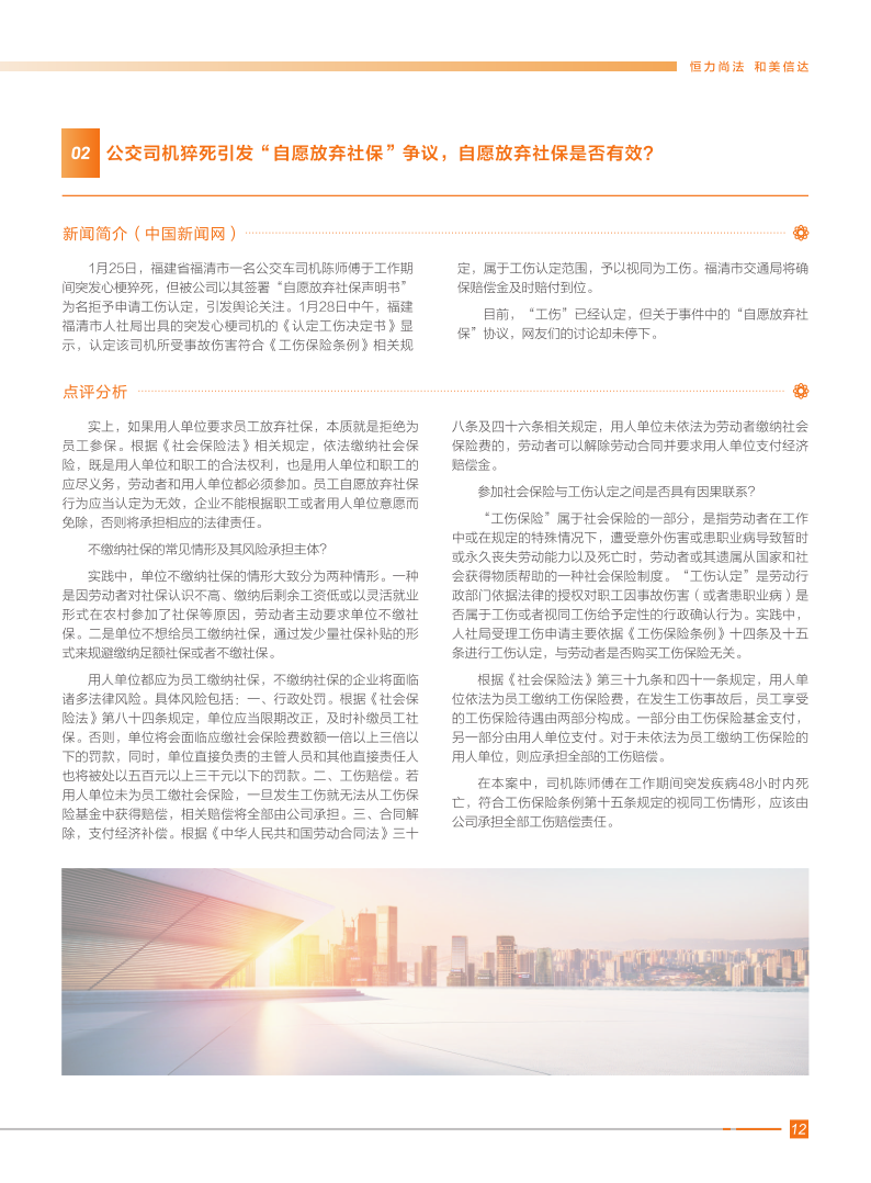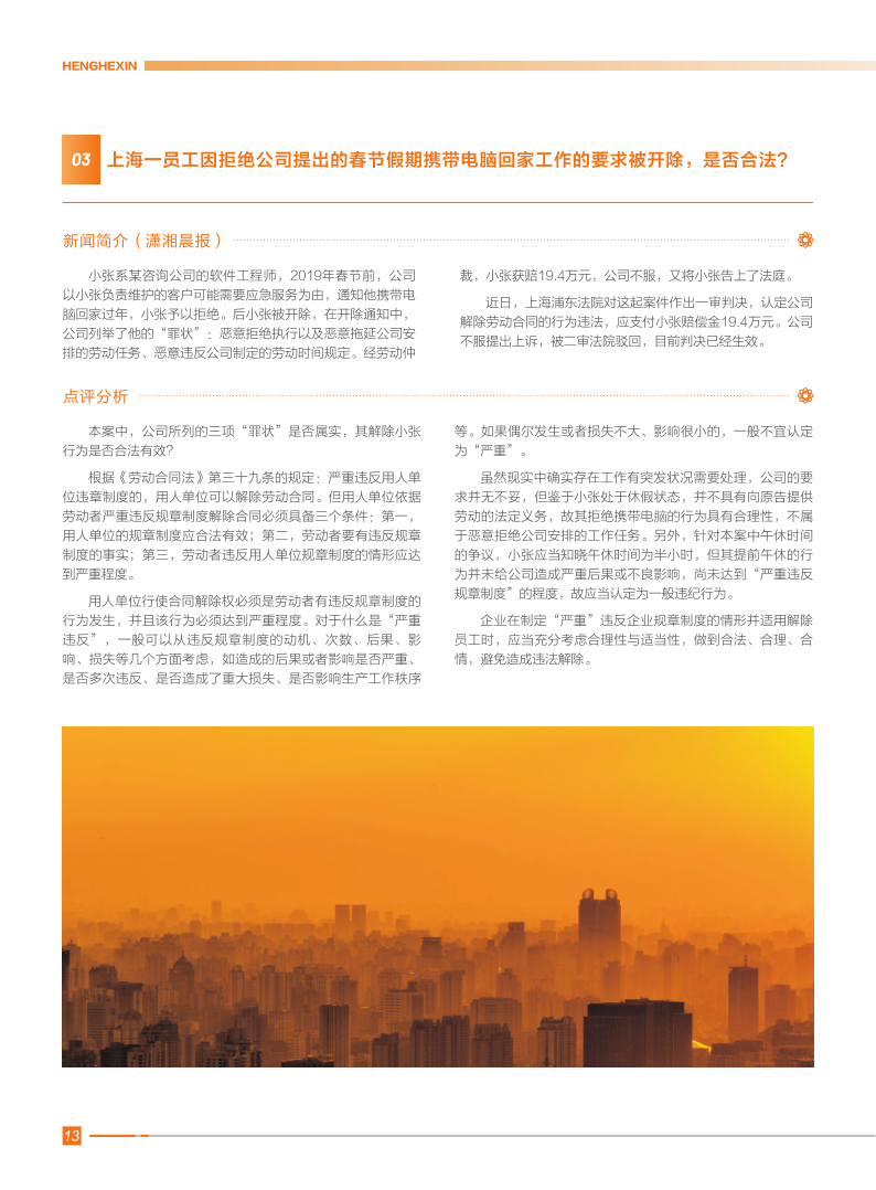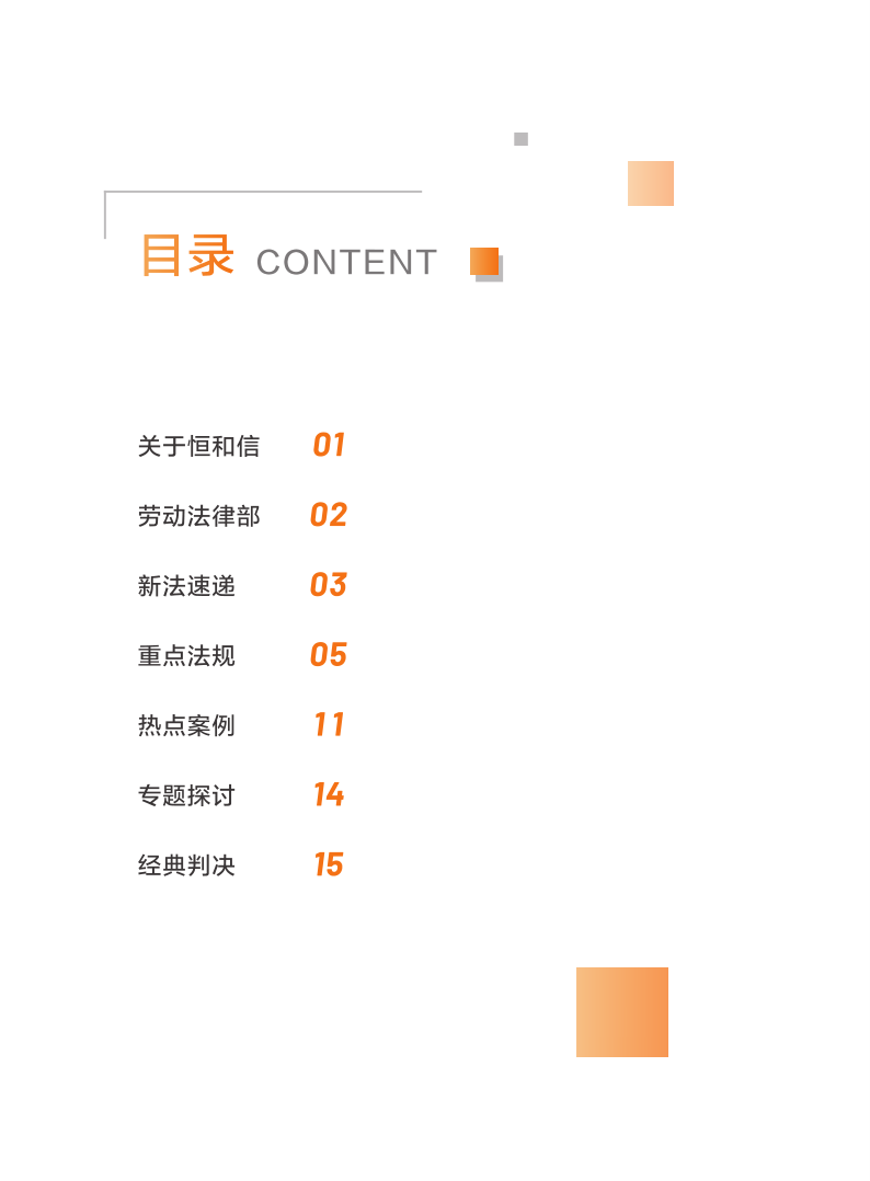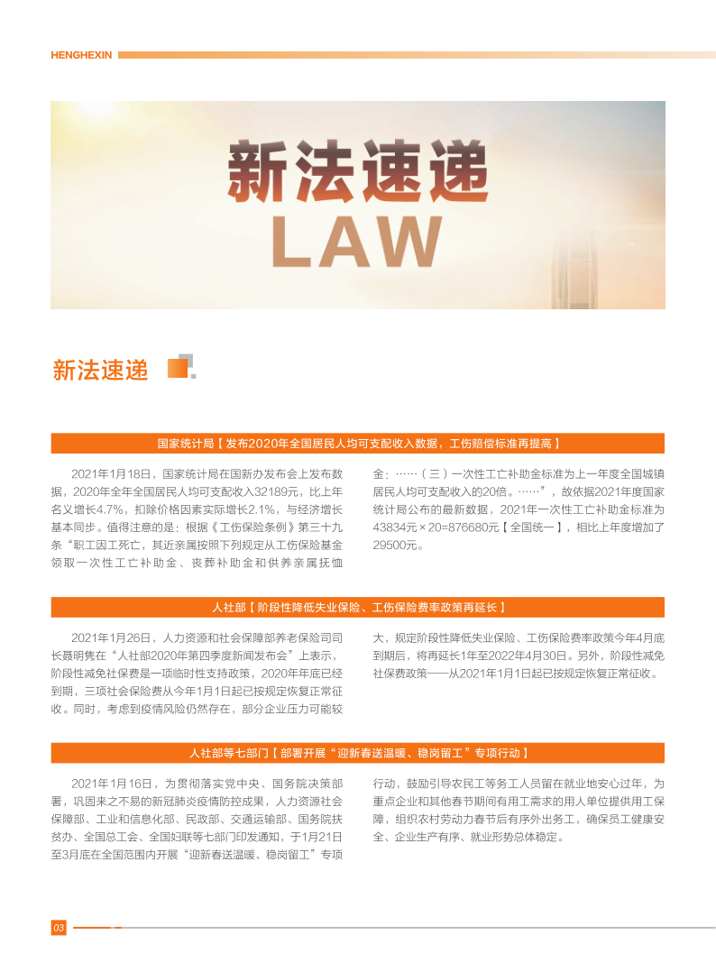 本刊由恒和信劳动法律部律师整理编辑,梳理当月劳动法领域新法律法规及重点法条,并以劳动法专业律师视角对热点社会新闻进行解读剖析,对经典案例进行深度研讨。