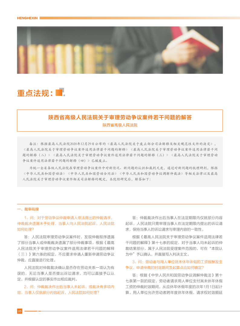 2⃣️重点法规:陕西省高级人民法院关于审理劳动争议案件若干问题的解答