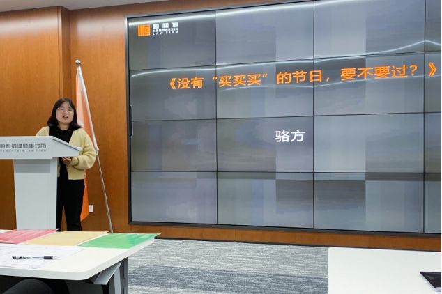 主题演讲环节由实习律师李培主持。演讲开始前,丁强老师率先分享了自己作为教育工作者面对节日文化时的态度。