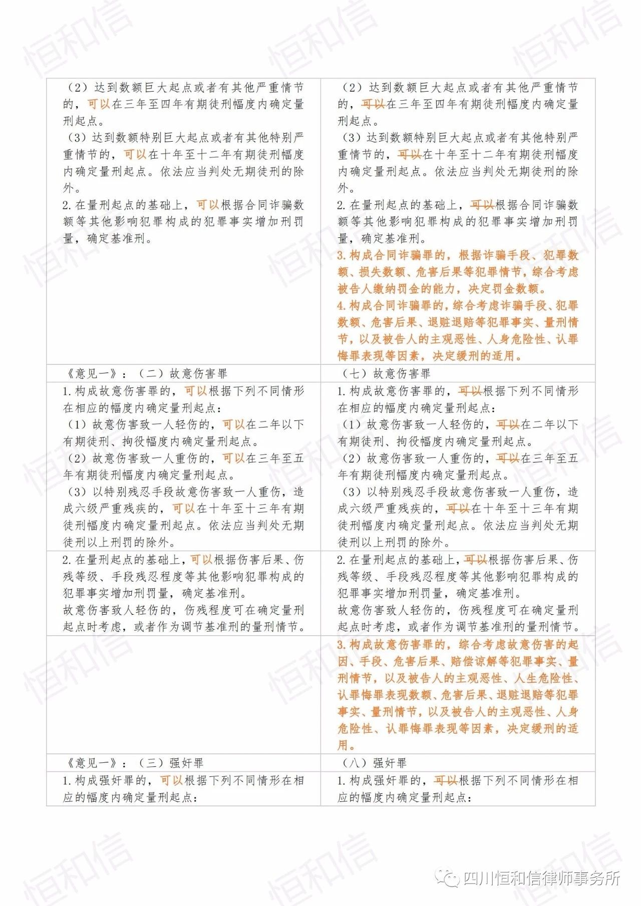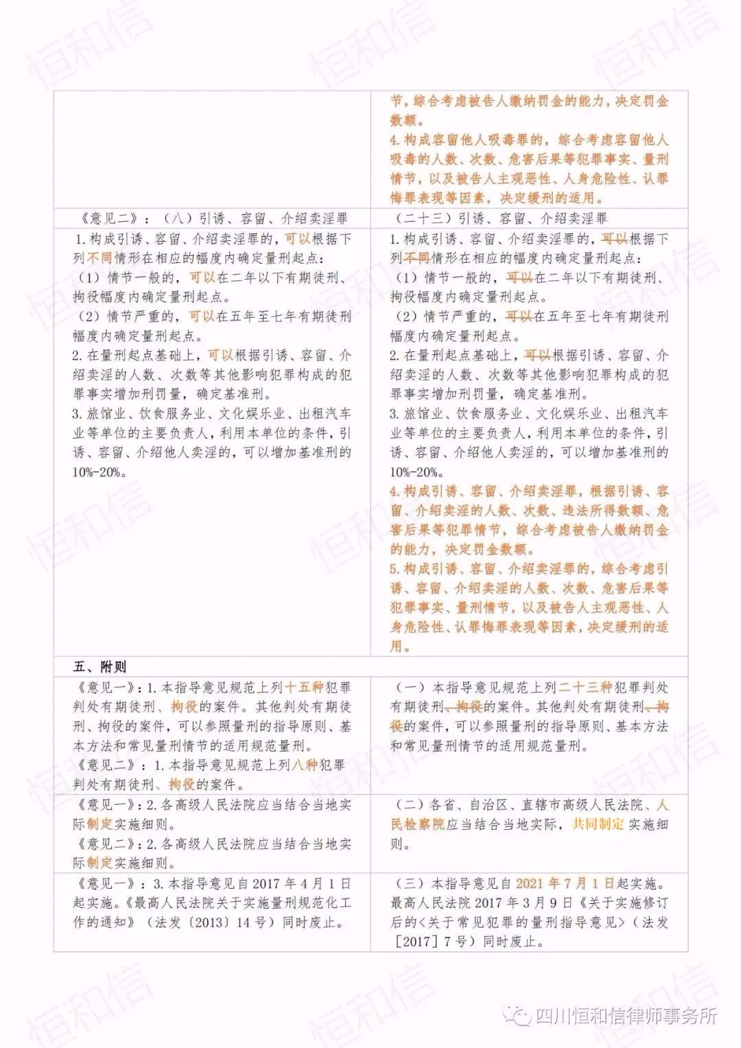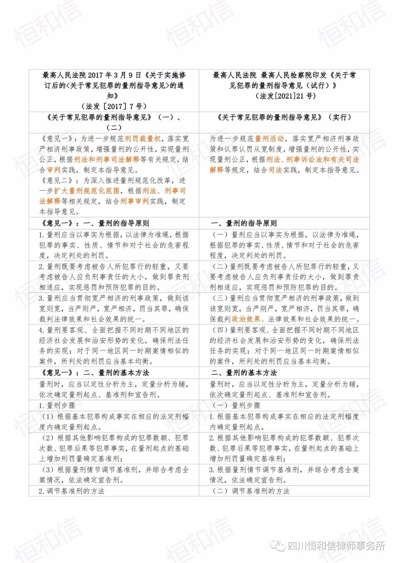 律师将2017年版与2021年版的量刑指导意见对照整理如下: