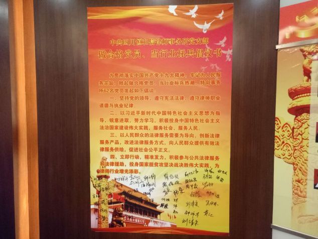 党支部向事务所全体律师发起了“做合格党员、当行业标兵“倡议,并组织全体党员在倡议书上签名,庄严承诺自己全面响应党支部“做合格党员、当行业标兵“倡议。