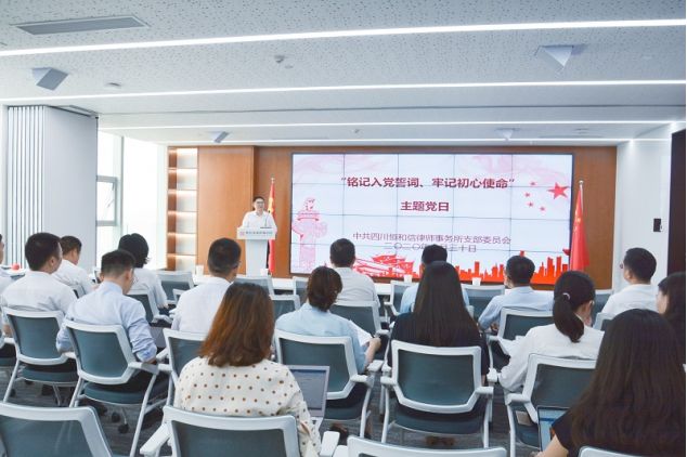 2020年6月30日,在“七一”建党节来临之际,中共四川恒和信律师事务所支部委员会(下称“党支部”)开展“铭记入党誓词、牢记初心使命”主题党日活动,组织全体党员集中进行宣誓、记牢入党誓词、重温入党志愿书,通过在鲜红的党旗下接受心灵净化和洗礼,重拾初心、牢记誓词。
