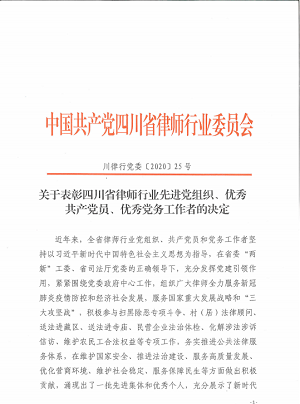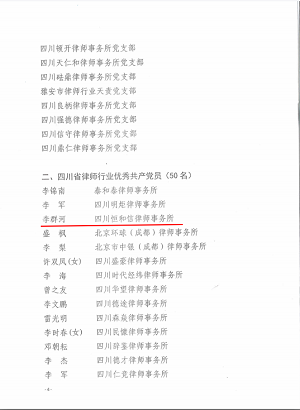本次论坛公布了150家四川省律师行业“党建标准化律师事务所党组织”名单,中共四川恒和信律师事务所支部委员会荣誉入选。为表彰先进、弘扬正气,论坛还公布了荣获首届新时代优秀共产党员名单。我所执行主任李群河律师被授予“四川省律师行业优秀共产党员”荣誉称号。